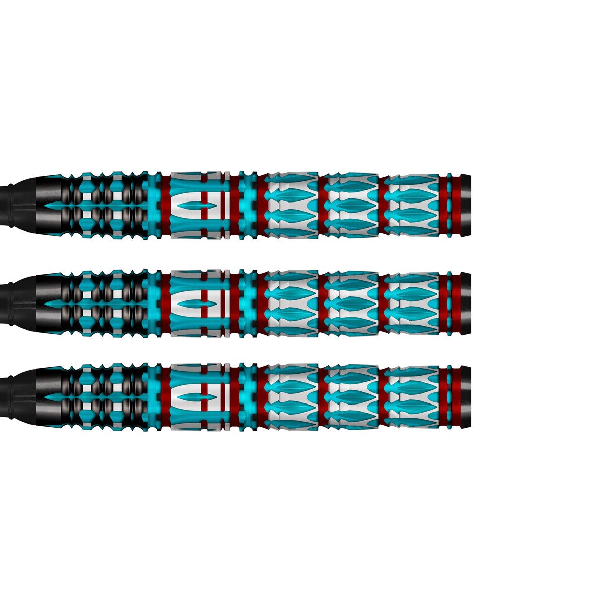 This premium 95% tungsten, missile-shaped dart set is expertly tapered, flying true whether thrown fast as a bolt or in a soaring arc. Inspired by dragon scales, the tail grip is storm forged from a fusion of advanced milling techniques. At the midsection, the knight’s blazing face shield glows brilliantly in red and turquoise, carved into tungsten with parametric milling paths. Up front, a tapered nose cut with alternating flat and spiked rings echoes a lance wrapped in thorns — the final strike of force and control.