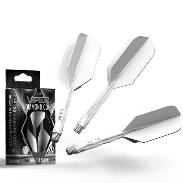 The Viper Diamond Core Integrated Dart Flight & Shaft System is the ultimate solution for players who demand precision, durability, and style. Combining integrated dart flights and medium dart shafts into a sleek, all-in-one design, this system optimizes every throw. Whether you're using soft tip darts or steel tip darts, the dart flight system is engineered for stability, accuracy, and compatibility with most setups. Featuring slim dart flights with a precise 90° wing angle, this professional dart flight system reduces drag for consistent, controlled throws. Built with durable dart flights and enhanced with diamond-patterned grips for secure finger placement, it delivers pro-level performance every time you step up to the board. The pack includes 3x integrated dart shaft and flights and is available in a variety of lengths and colors to match your style. Upgrade your game with the Viper Diamond Core—because every throw counts.